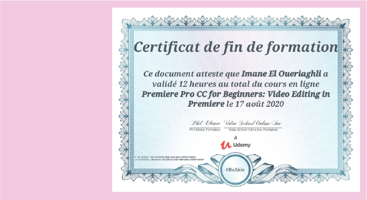 Certifié par l'UDEMY, je me suis amusée à créer différents univers et me mets à jour de toute la suite Adobe annuellement.