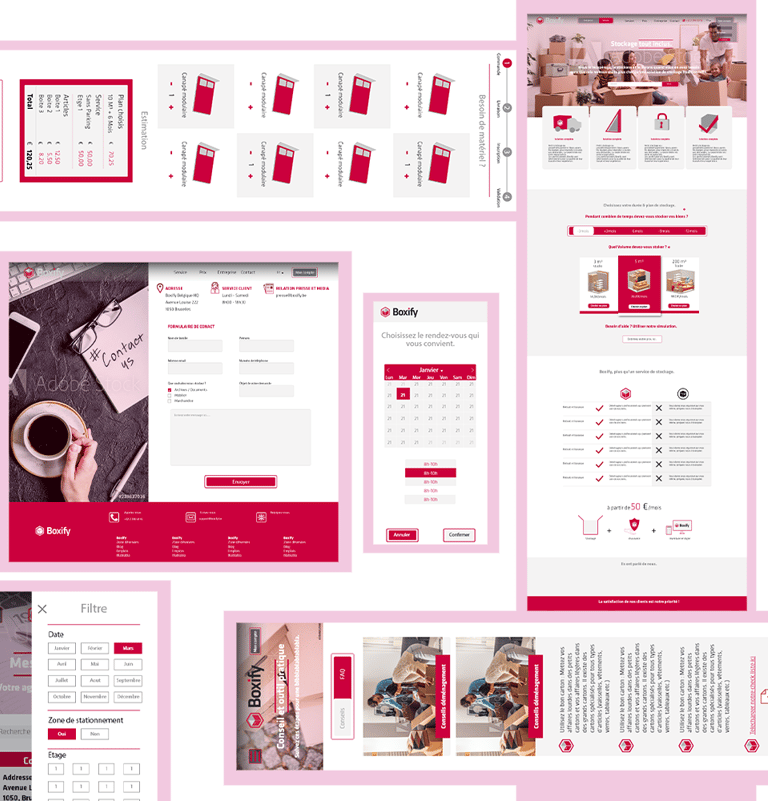 Un gros projet lors de mon stage chez Boxify, une compagnie de stockage offrant aussi un service de livraison. J'ai pu refaire le design de leur futur nouveau site.